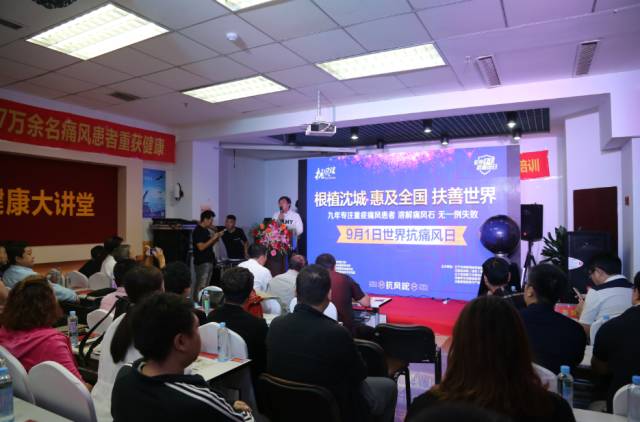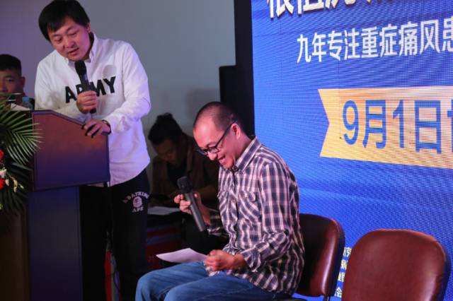 然后由張芮袀先生分享抗風(fēng)竤團(tuán)隊(duì)走過的九年歷程。從自己也是一位痛風(fēng)患者講起,介紹了“東北雌性紅蘿卜”不僅治愈了自己,也治愈了身邊的人。由此想到組建團(tuán)隊(duì),讓治痛風(fēng)的方式更廣闊的傳播出去,以幫助更多的痛風(fēng)患者。制定“世界抗痛風(fēng)日”的初衷就是呼吁社會(huì)多關(guān)注痛風(fēng),遠(yuǎn)離不良的生活方式,同時(shí)希望這種治療痛風(fēng)的療法能走出全國(guó),走向世界!