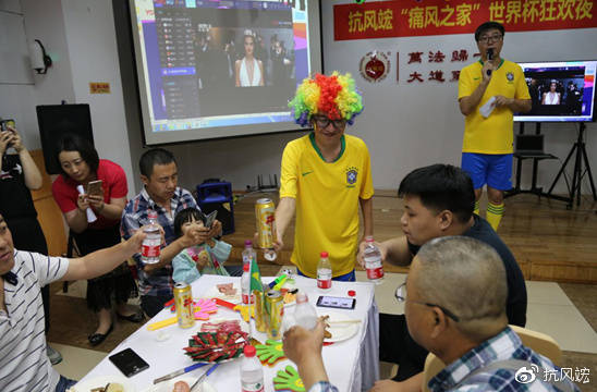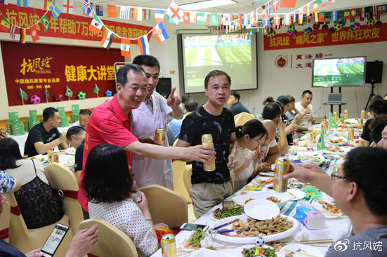 2018年6月22日晚,60余位痛風(fēng)患者及家屬一起歡聚沈陽(yáng)抗風(fēng)竤中醫(yī)門診二樓多功能廳,和抗風(fēng)竤的醫(yī)生、護(hù)士、康復(fù)指導(dǎo)師們,一起度過(guò)了個(gè)難忘的世界杯之夜。