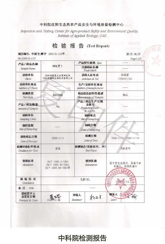 2008年的金秋,我把這個天賜地造的靈物送到了“中科院營養(yǎng)檢測中心”,檢測結(jié)果非常驚人,報(bào)告中顯示:抗風(fēng)竤·東北雌性紅蘿卜跟普通蘿卜相比較,鉀高出25.8倍、鈣高出2.3倍、磷高出2倍、硒高出3.1倍。其中鉀就有調(diào)節(jié)人體酸堿平衡、中和血尿酸的作用,并參與嘌呤和糖的代謝;鈣是酶的激活劑,能促進(jìn)嘌呤的代謝;磷可以快速提高人體自愈力,促進(jìn)受損器官的修復(fù);硒則是微量元素中的抗癌之王,能延緩衰老、預(yù)防慢性病的發(fā)生,硒還是人體DNA修復(fù)酶的激活劑。這些元素混然天成一個“自然、均衡、安全、有效”的有機(jī)體,與藥物的人工合成有著本質(zhì)的區(qū)別。