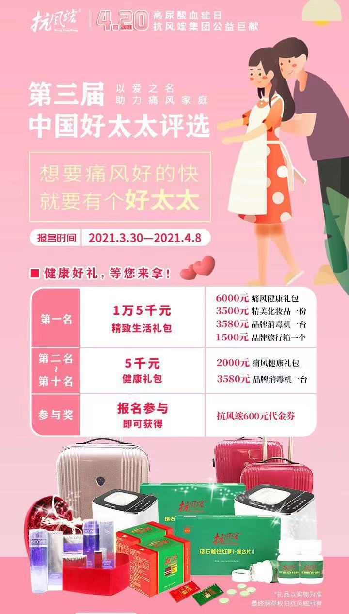 作家羅絲安·雷克所說:“ 女性正在向自我實(shí)現(xiàn)的金字塔尖前進(jìn)。”新時(shí)代下,越來越多的女性走向前臺(tái),不再只是參與者,而是作為領(lǐng)導(dǎo)者和決策者,在各個(gè)行業(yè)和領(lǐng)域發(fā)揮著重要的作用。程莉琂總裁勵(lì)志帶領(lǐng)抗風(fēng)竤團(tuán)隊(duì)幫助更多的痛風(fēng)患者快速康復(fù),全面提升抗風(fēng)竤的品牌形象,努力把抗風(fēng)竤打造成"中國(guó)痛風(fēng)康復(fù)第一品牌",成為展現(xiàn)沈陽城市魅力的又一張"城市名片",為沈陽市的繁榮發(fā)展加油助力!這么多年來沈陽抗風(fēng)竤(綠色)醫(yī)療產(chǎn)業(yè)管理集團(tuán)不忘初心,以“幫助痛風(fēng)患者快速康復(fù)”為己任,以科技轉(zhuǎn)化醫(yī)療,愛心救助病患,每年都會(huì)舉辦類似“中國(guó)好太太”評(píng)選這樣的公益活動(dòng),以愛心公益救助痛風(fēng)和慢性病家庭,奉獻(xiàn)一個(gè)企業(yè)的愛心和溫度。據(jù)了解,4.20當(dāng)日線上會(huì)有遼沈名醫(yī)及抗風(fēng)竤專家做客直播間和大家一起來講訴痛風(fēng)與高尿酸血癥的防治,線下沈陽抗風(fēng)竤中醫(yī)門診及全國(guó)合作幾百家診所將進(jìn)行聯(lián)合義診公益活動(dòng),喚起更多人來關(guān)注高尿酸血癥、遠(yuǎn)離痛風(fēng)。
