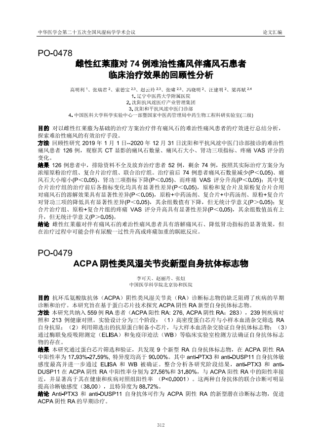 《雌性紅萊菔對(duì)74例難治性痛風(fēng)伴痛風(fēng)石患者臨床治療效果的回顧性分析》(作者:高明利、張瑞君、索德寶、趙云玲、張嘯、馮曉明、汪建明、梁再賦)